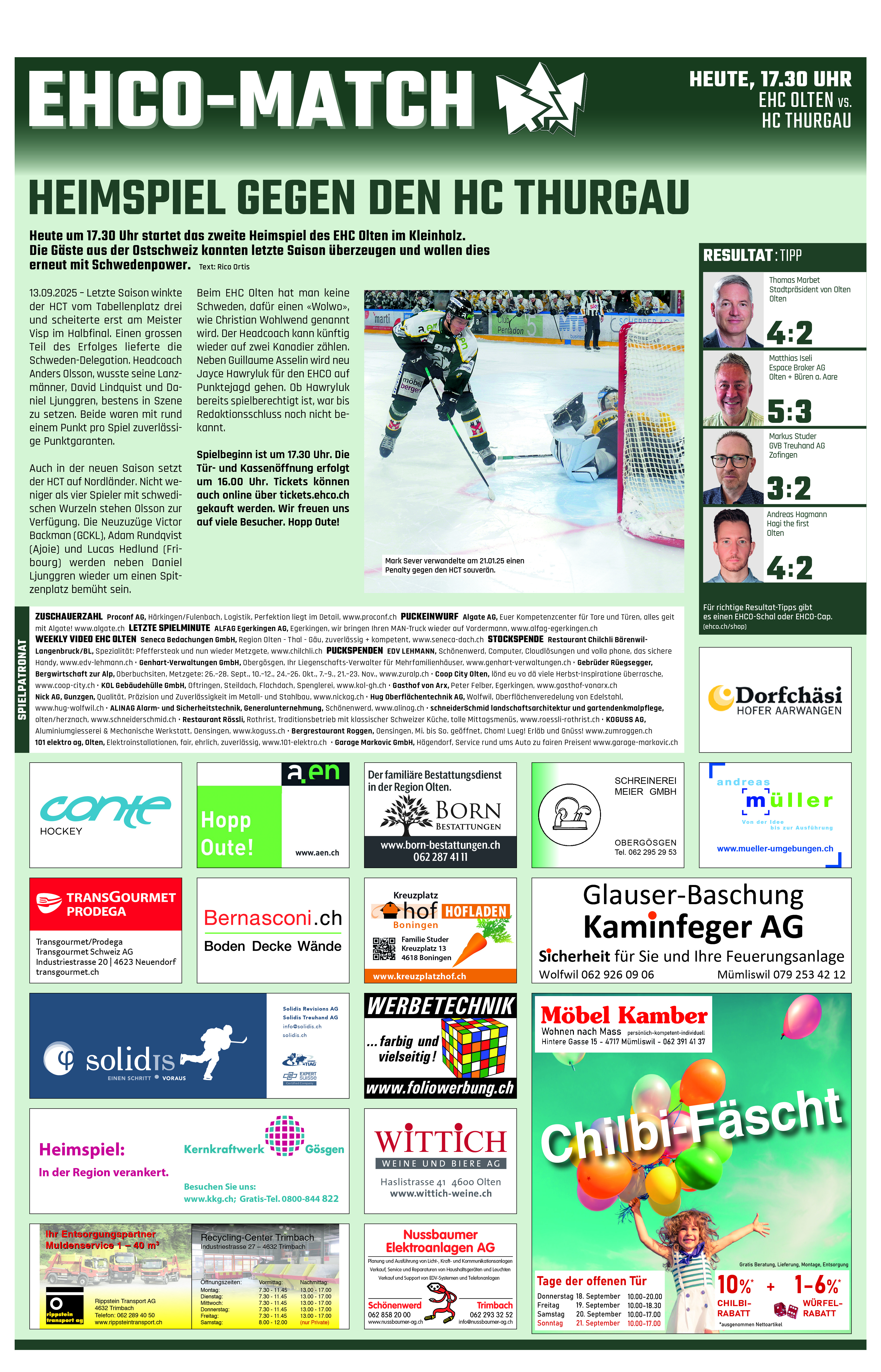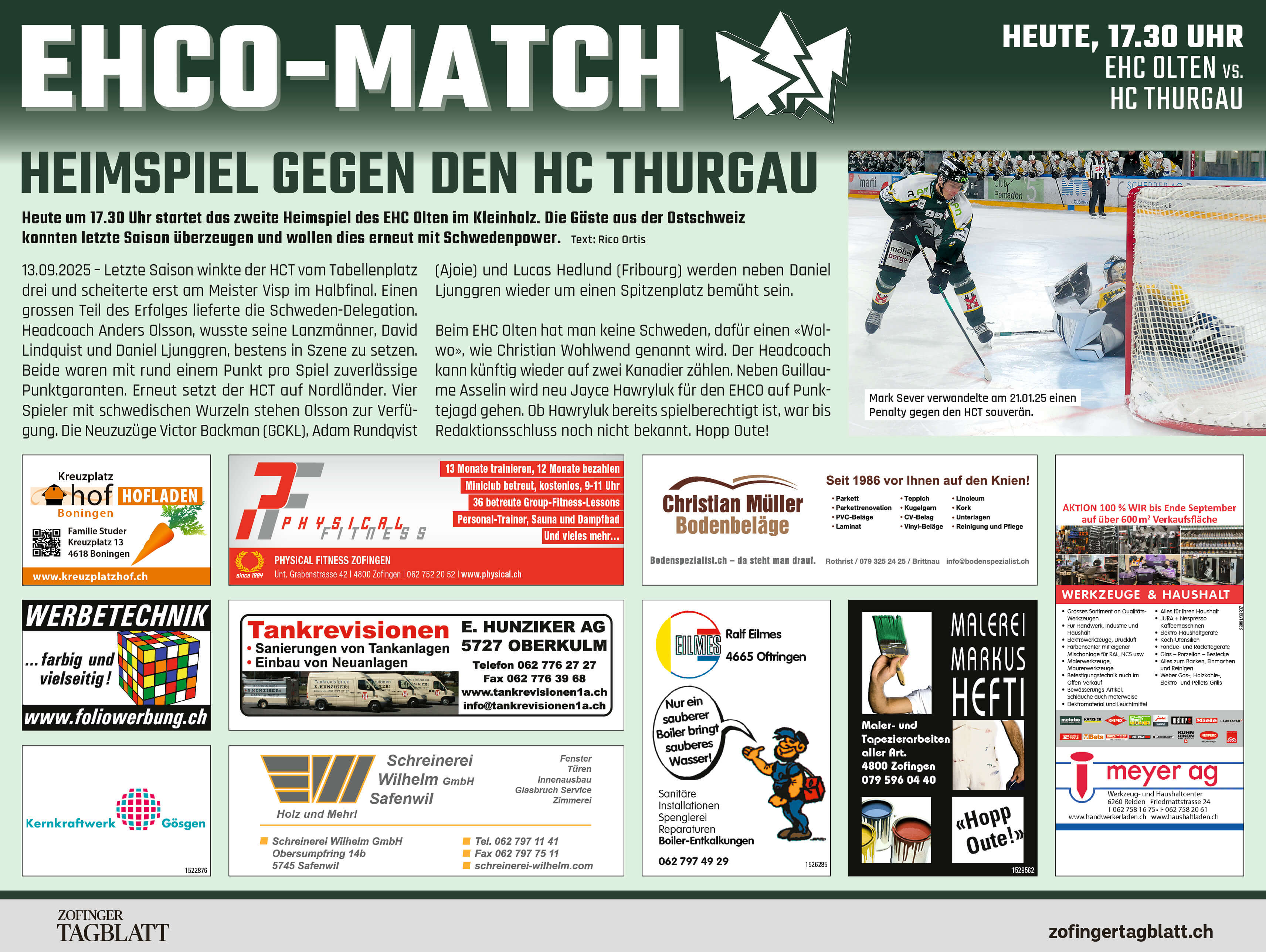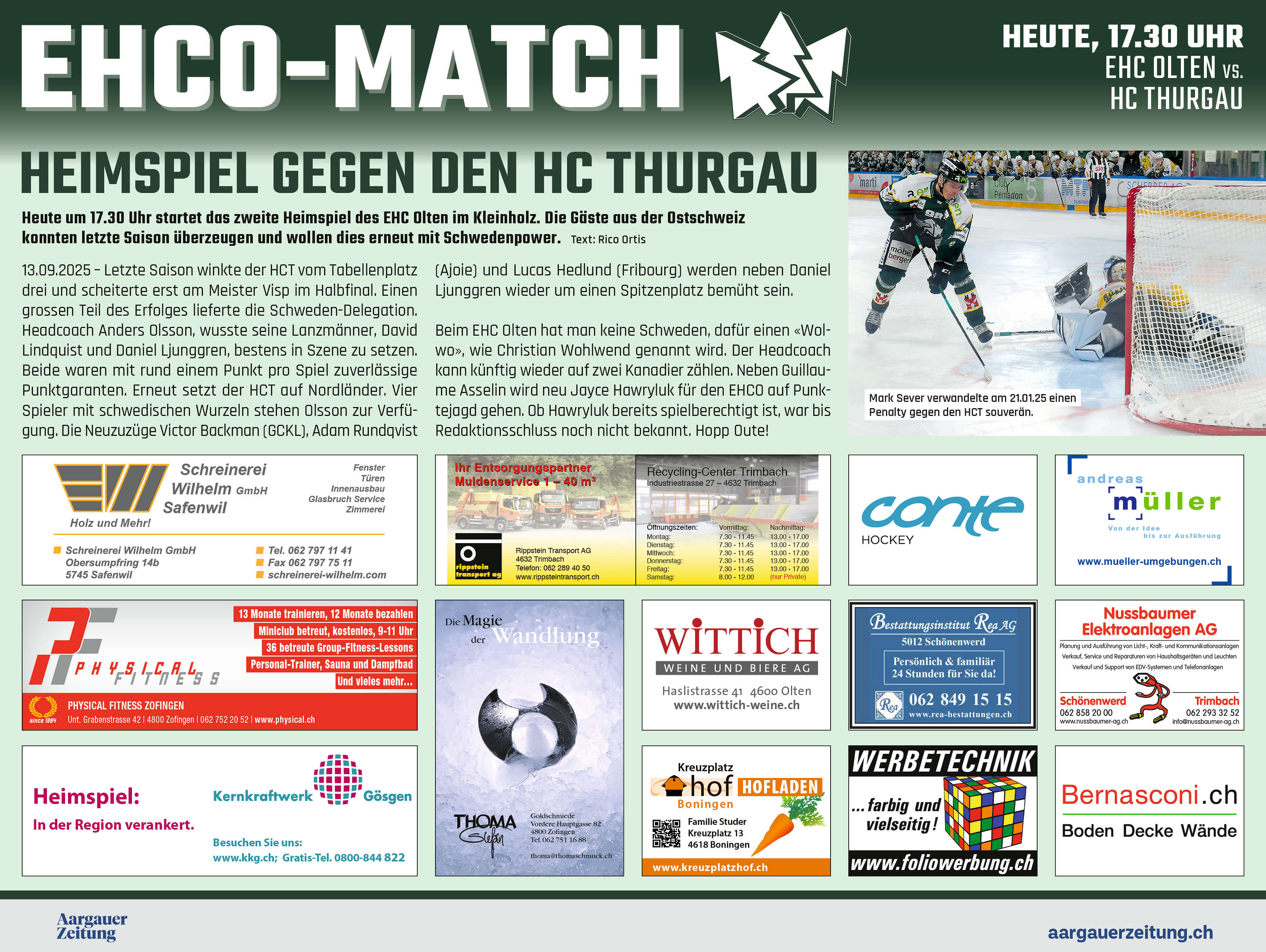 Heute um 17:30 Uhr startet das zweite Heimspiel des EHC Olten im Kleinholz. Die Gäste aus der Ostschweiz konnten letzte Saison überzeugen und wollen dies erneut mit Schwedenpower.
